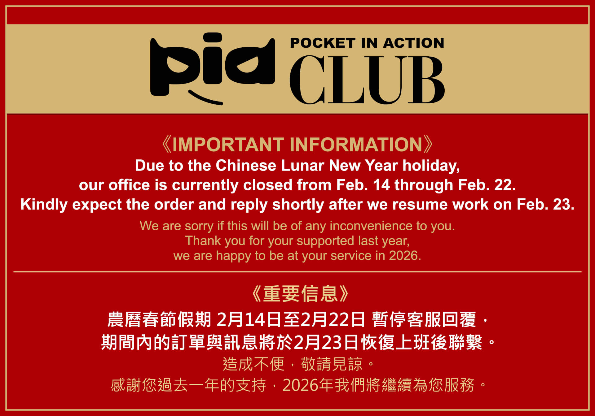 - PARTICIPANTS : Lunar New Year Holidays Notice, Notice