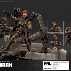 Like many Agurtans, Captain Moirah of the Corsac Quick Reaction Forces (attached to the 88th Sand Team) came from abroad. Her family traveled from the east - from the other side of the Estancian Gray Zone - to eventually settle in Baluard at the feet of the Tritan mountains. It was here that Moirah met another immigrant: Laina Djemai. The two became fast friends as well as rivals, each always seeking to outdo the other in daredevil feats. They even joined the army together, planning to form a deadly duo - but were ultimately given different assignments. Promising to rise through the ranks and meet later, the two separated. Moirah was sent to the deserts of the Estancian Gray Zone she had crossed as a child. She found the sands to her liking, a place where her tempestuous personality and willingness to banter matched well with the gritty wit valued by the 88th. She was given over to the Corsac Quick Reaction Forces and gained a reputation for being the first in and last out, eventually resulting in her promotion to captain. Recognizing her achievements, she was authorized by top Agurtan military leaders to equip leg bracers and boots of the AEGIS exoskeleton armor, further enhancing her agility and combat prowess. Recently she hasn’t heard from her friend Djemai, but she’s excited for the day the two finally reconnect and share war stories in one of the Baluardan dive bars of their youth.