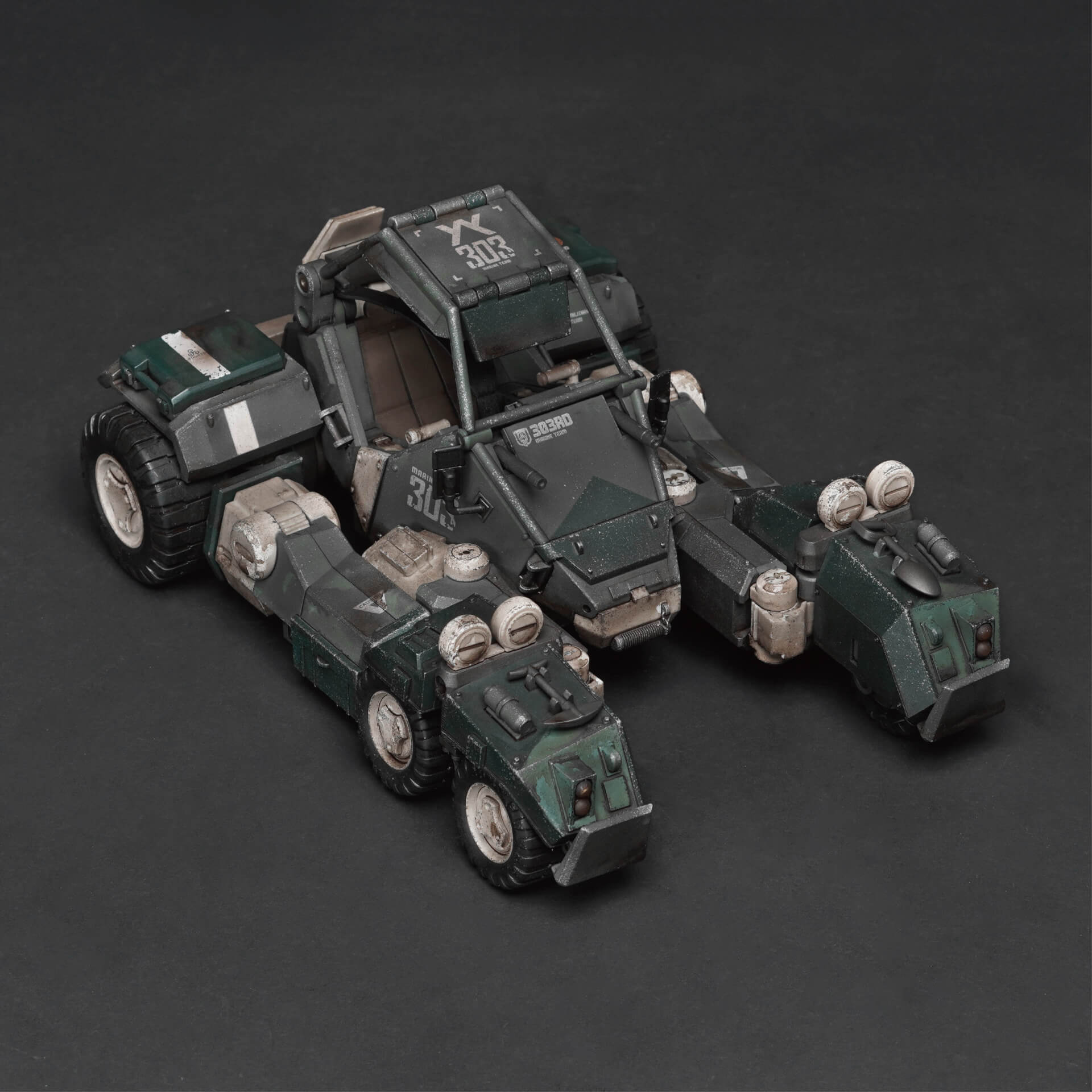 The Marine Speeder MK2m is a versatile Synchro exoArmor deployed by Agurts’ 303rd Marine Team. It transforms between a rugged six-wheeled off-road buggy and a towering humanoid mech form, offering flexible tactical options and diverse combat perspectives.