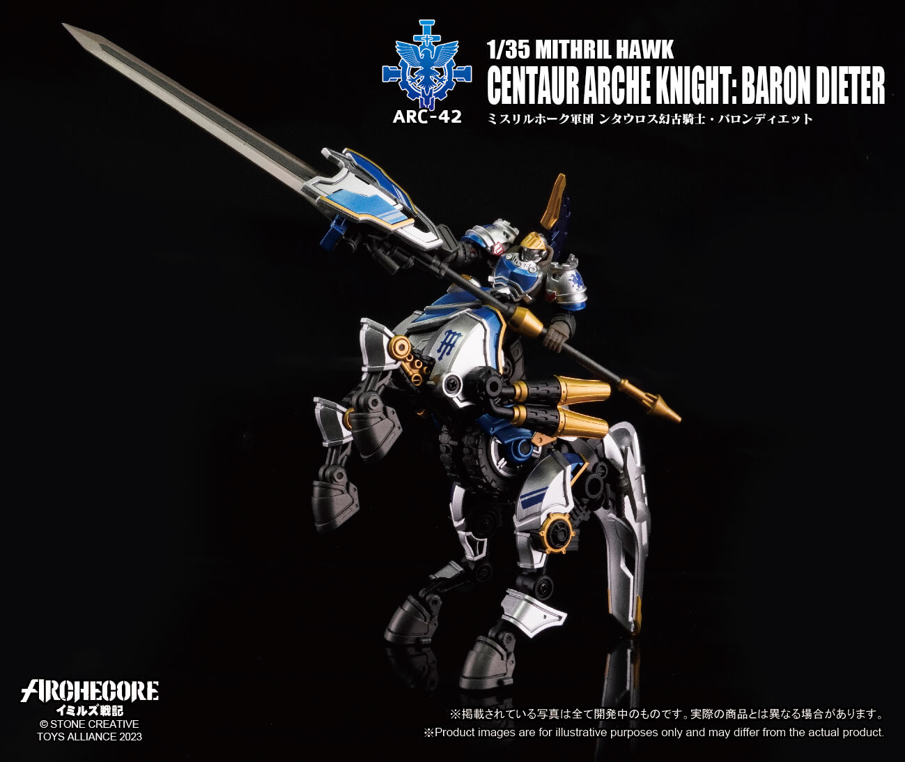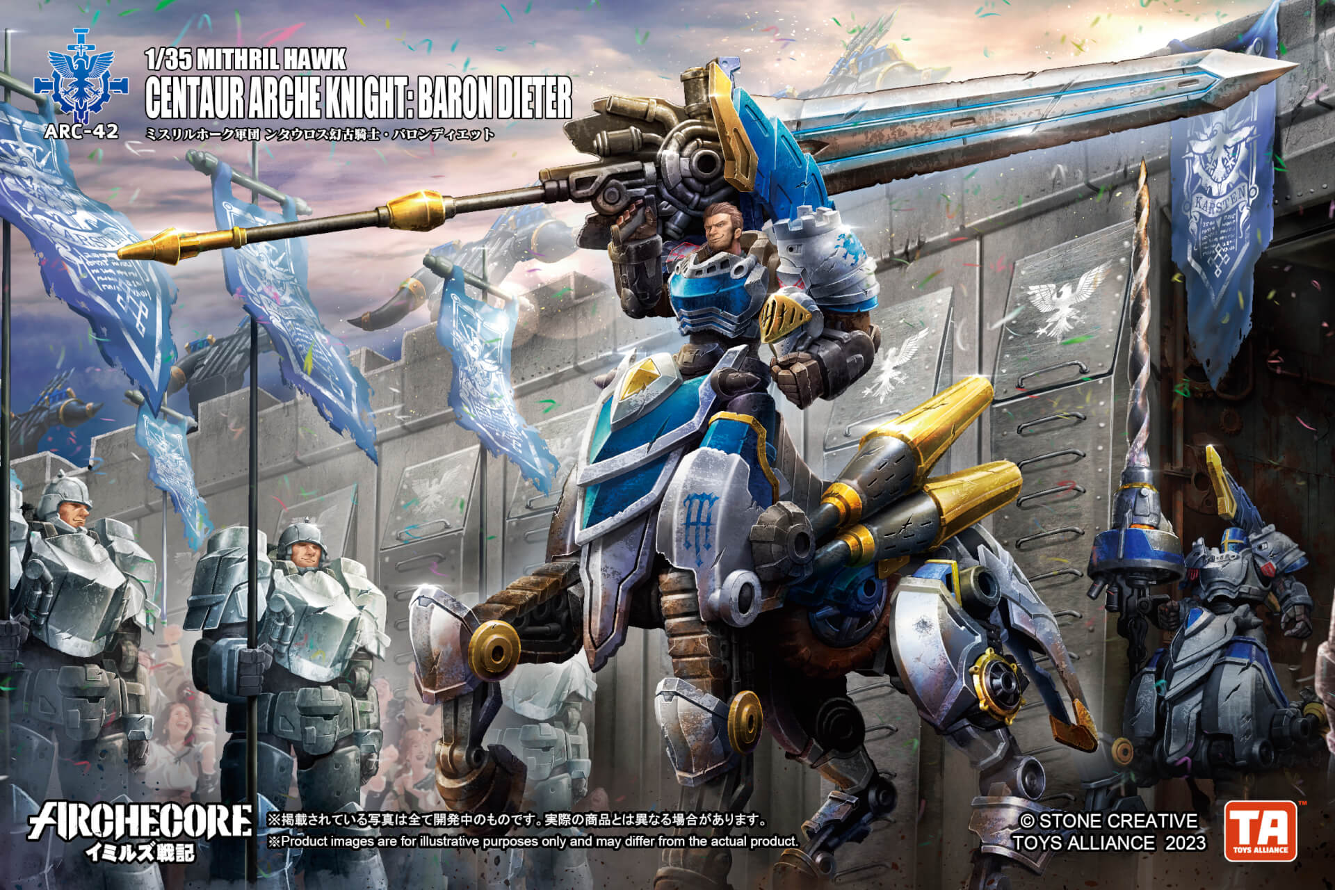 Karsten is a republic ruled by a Parliament of Knights. As such, knights enjoy high social position and occupy leadership roles at various levels of the military. As Arche technology became more widespread and the blue crystal supply increased, the knights began to replace their traditional armor with Arche Armor, and therefore became known as Arche Knights. But Arche Armor designed for infantry was obviously a poor match for the traditional image of a knight mounted on horseback. To solve this problem, and to emphasize their status as members of the nobility, high-ranking knights needed a more impressive getup.