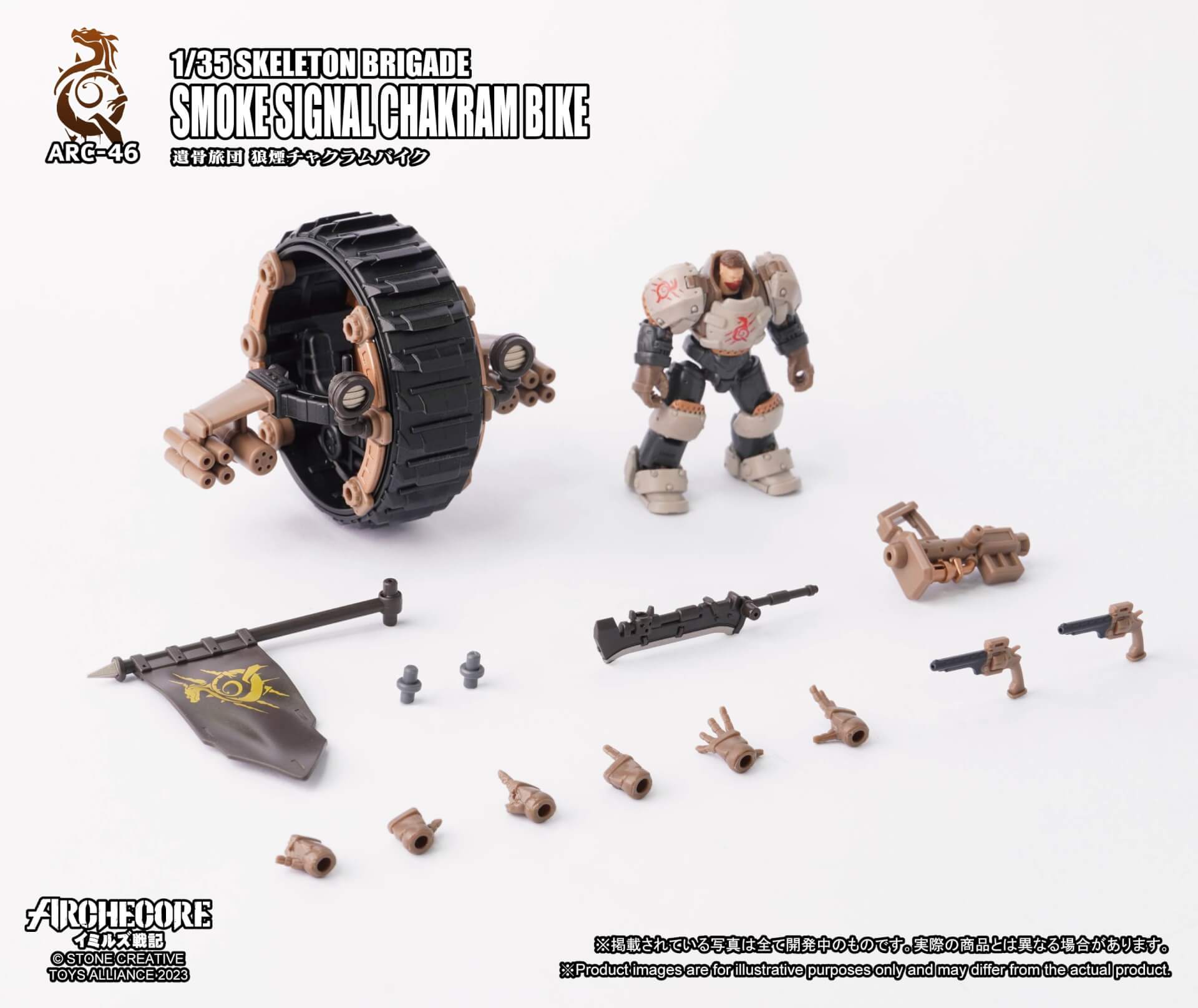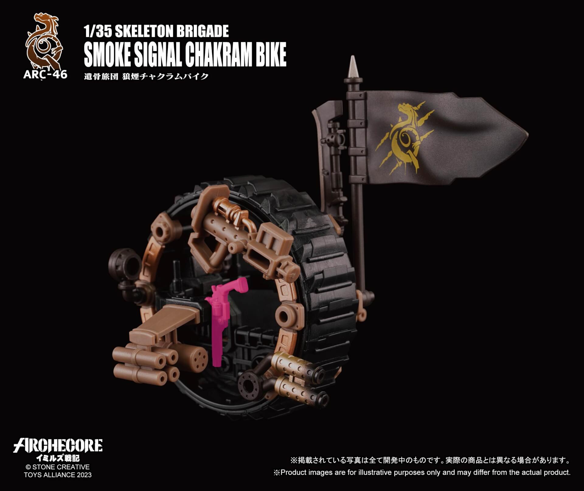 The Smoke Signal Chakram Bike is the Wasteland’s strongest hunting vehicle. Unlike conventional bikes, it uses an external wheel as the frame. It boasts superior off-road capabilities, seamless control and maneuverability, and an open seat design for excellent visibility. Along with its powerful mounted weaponry, the driver can also make use of handheld melee and ranged weapons or even leaping from the bike to engage directly in combat. Due to the harsh environment of the Wasteland, the Desert Reptilis tribes have long sought a long-range vehicle capable of traversing varied terrain. Given the barren surroundings of desert and ruins with scarce food and water, large-scale vehicles like the Lizard Cannon Carriages are reserved for raids and escort missions with a clear destination. For long-distance patrols, smaller vehicles requiring fewer supplies are ideal. With the establishment of a scavenging system and modding workshops by the tribal warlord, Mosa, and a Karsten prototype as a model, a single-rider vehicle for scouting and hunting was finally created. The large wheel forming the bike’s frame gives the Smoke Signal unrivaled off-road capability. Its single wheel body gives better balance, allowing it to right itself by simply turning. The bike can smash through enemies and obstacles alike as well as changing direction abruptly for a quick getaway. More than just a reconnaissance vehicle, the Smoke Signal is an assault weapon. Its immense torque makes it difficult for a normal person to handle, and thus it is only assigned to Wasteland soldiers equipped with Arche Armor.
