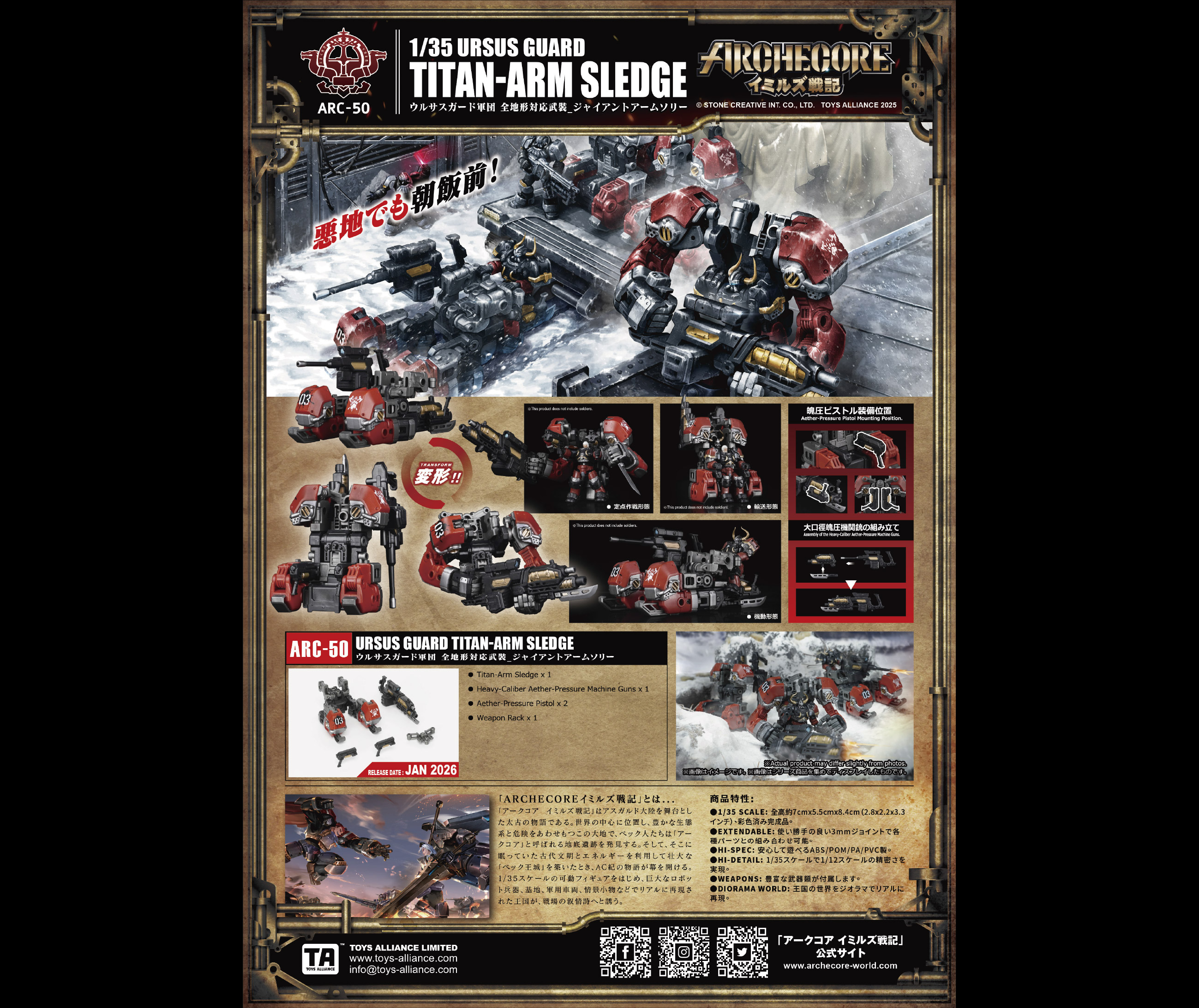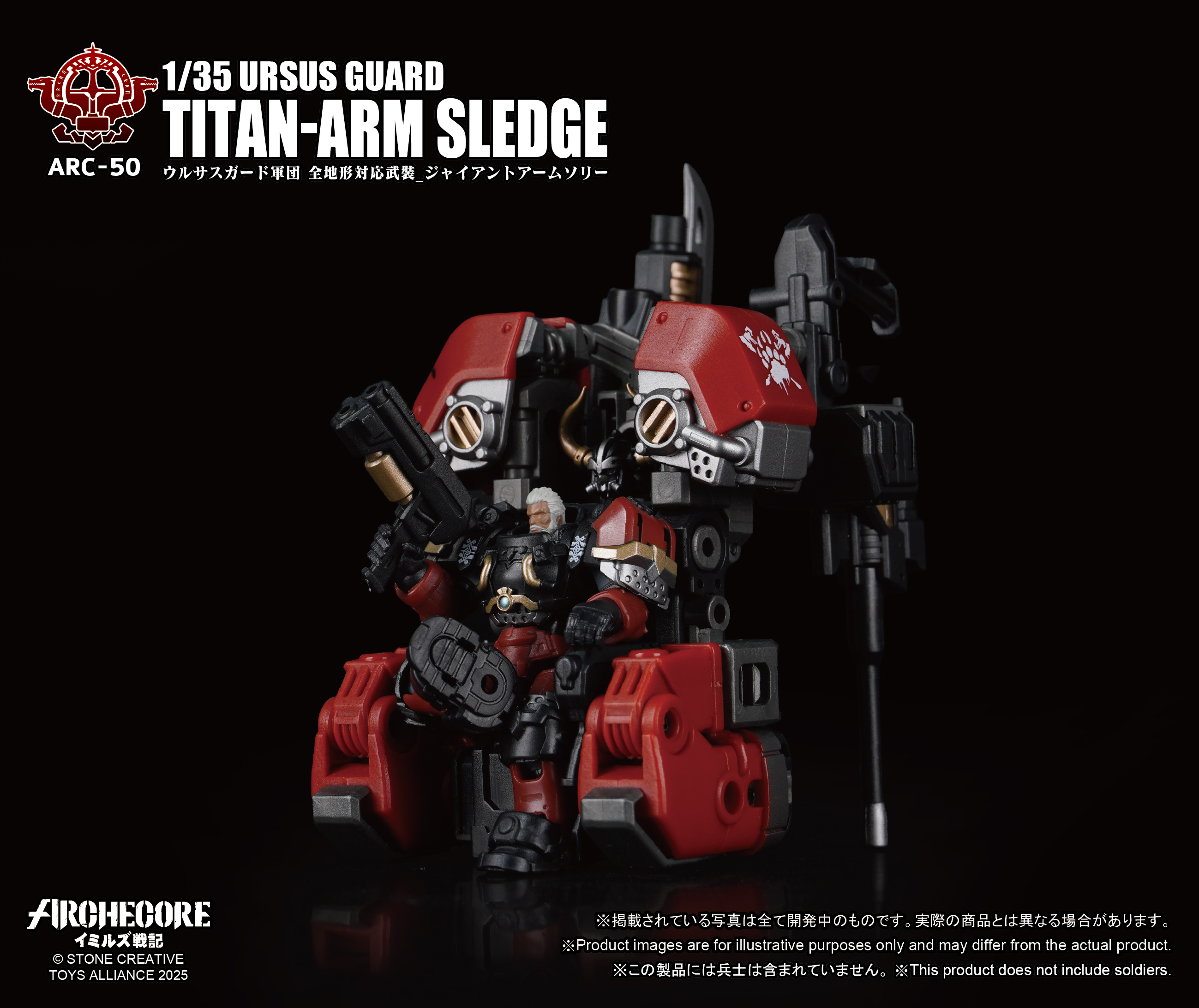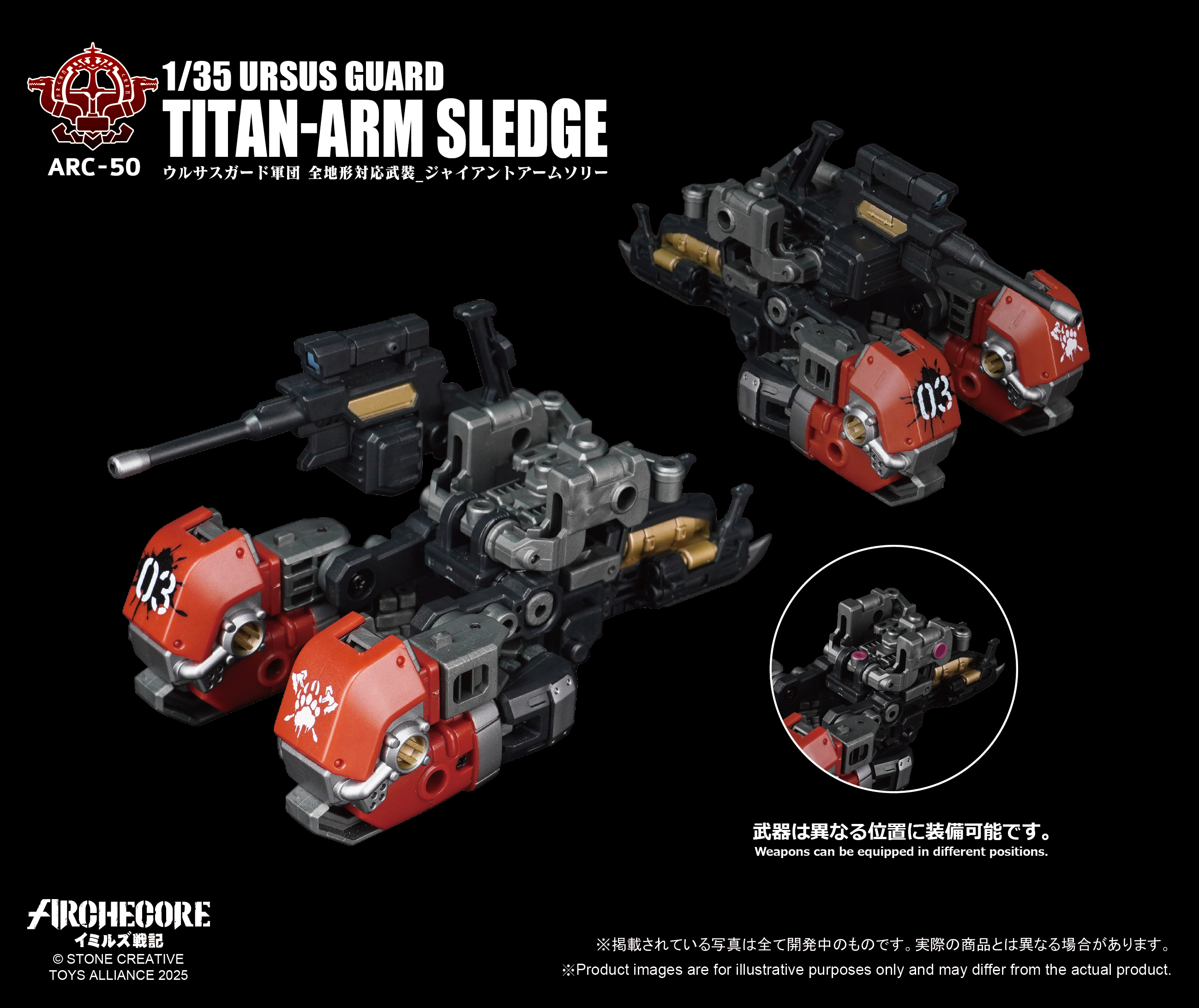 The land of Asgard features several well-known snowy regions. Aside from Elmo Polis, which is frozen year-round, the towering Anjou Mountains are also blanketed with snow. The Private Guard’s Titan-Arm Sledge is outfitted with triple-linked Arche engines, enabling it to haul supplies across treacherous mountain terrain. Its integrated skeletal frame allows it to seamlessly reconfigure into a transport vehicle. While its central compartment can only accommodate a single occupant, it can carry additional passengers via a shoulder mount when necessary. If isolated and cut off from help, it can extend its blue steel titan-arm to engage in unrestricted combat operations.