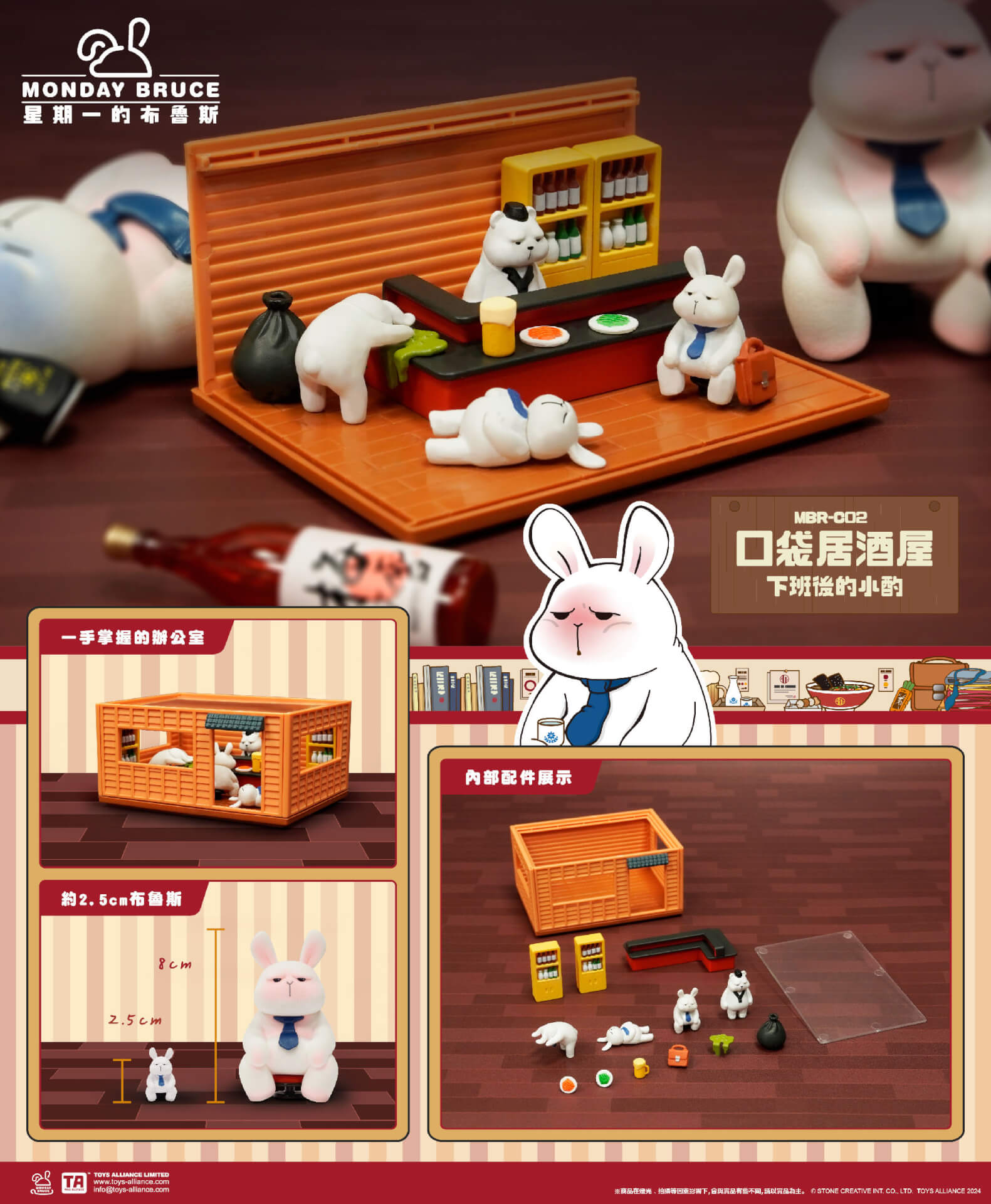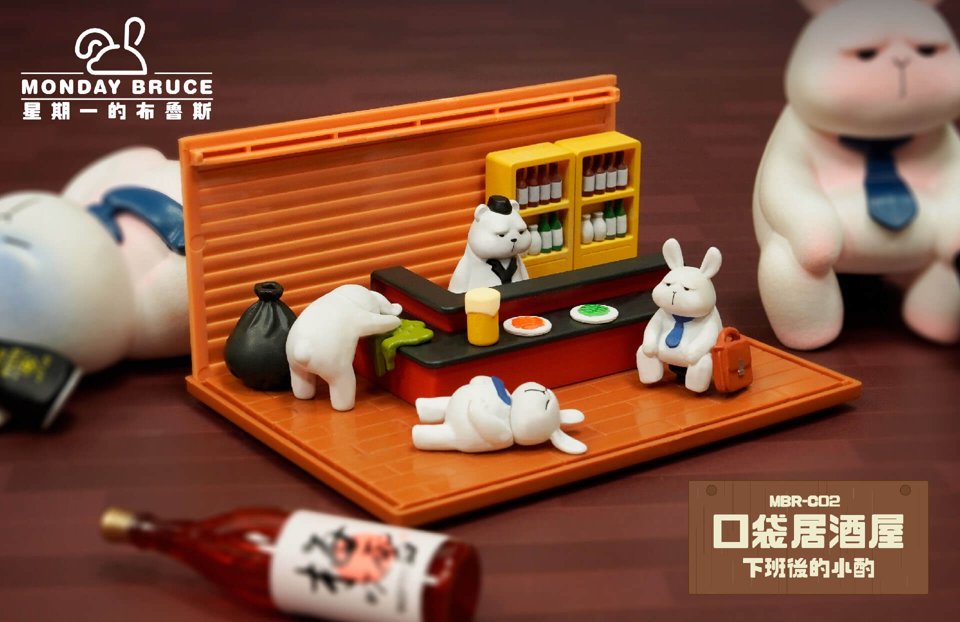 Mini box series Bruce. For the first time, shrinks the izakaya by 30%, allowing everyone to easily take away the entire izakaya. Inside, there have the owner of izakaya“Cool” , and the drunk Bruce. The MBR-C series can be stacked up and down. Let’s have a drink with Bruce after work!